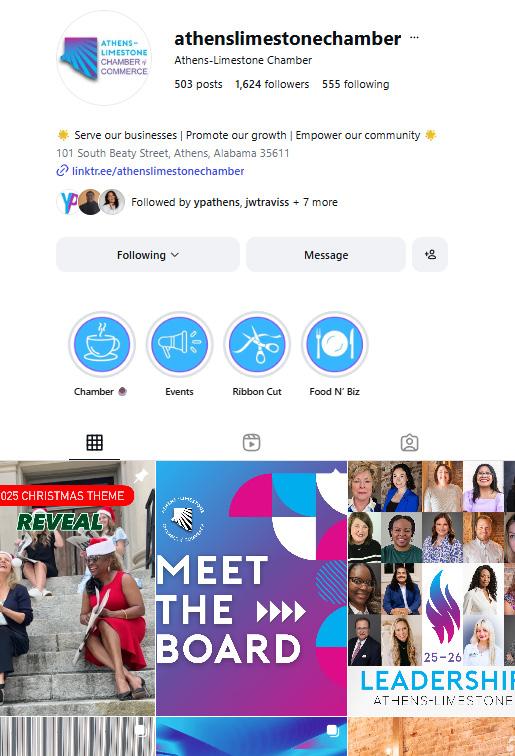 The Athens-Limestone County Chamber of Commerce is dedicated to being the voice of the business community. Our mission is to serve our businesses, promote our growth, and empower our community. We strive to advance economic development and create a thriving environment for our community. Through collaboration and strategic initiatives, our vision is to be the bedrock for business development in the fastestgrowing county in Alabama.