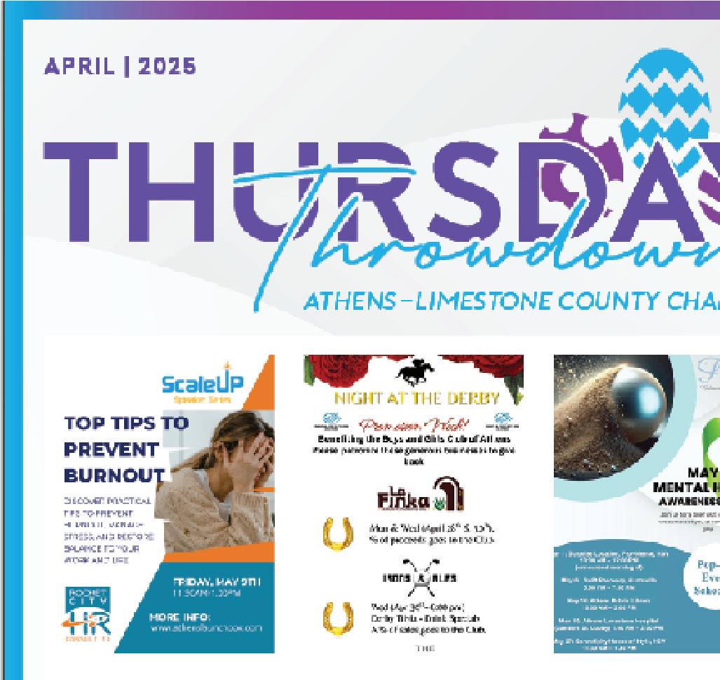 As an Athens-Limestone County Chamber of Commerce member, you have exclusive, no-cost access to share your news with the community! Promote your upcoming events, business announcements, special o ers, and more in our bi-weekly Newsletter reaching over 1,000 contacts, including local leaders, elected o cials, fellow members, and engaged community members.