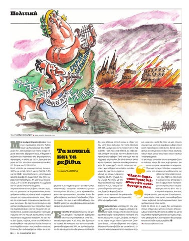 και «κύκλοι», καλό θα ήταν να μας έλεγαν θα είναι πιθανώς επτά ή οκτώ, οι έδρες της συγχρόνως και ποια ακριβώς κυβερνητική ΝΔ, κατά τους ειδικούς πάντοτε, θα είναι λύση προσδοκούν από αυτές. Εκτός και αν 125-135. Ακόμα και αν το ποσοστό της ΝΔ απλώς ανυπομονούν να δουν τους εαυτούς αυξηθεί –κάτι που είναι πιθανό, αν λάβει κατους ή τους γιους τους (και ο νοών νοείτω) νείς υπόψη τον αέρα που της δίνει το ότι «στα πράγματα». προηγείται σταθερά–, από τη στιγμή που τα Οι εκλογές γίνονται για να αποφασίζουν κόμματα της Βουλής θα είναι επτά ή οκτώ οι πολίτες ποιος θα τους κυβερνήσει, όχι και το ποσοστό εκείνων που θα μείνουν εγια να μετράνε «κεφάλια» τα κόμματα. κτός θα προσεγγίζει το 6% (πόσο πια να Όσο για τα περί έλλειψης νομιμοποίπάει;), και πάλι για να υπάρξει αυτοδυησης της σημερινής κυβέρνησης, με ναμία θα πρέπει το πρώτο βάση τις τελευταίες εκλοκόμμα να συγκεν τρώσει Όλες οι δημ γές, του 2009, οι πολιτικές περίπου 38,5%. Χλωμό, ποο σκοπήσεις δυνάμεις που στηρίζουν λύ χλωμό. Άσε που, με την δ είτην κυβέρνηση Παπαδήπτωτική τάση που παρου- χνουν ότι α υ σιάζει ο ΛΑΟΣ, ακόμα και δυναμία γιοτο- μου εκπροσωπούν περισκ σότερο από το 80% του εμια κυβέρνηση συνεργακλογικού σώματος. Και στις σίας Σαμαρά-Καρατζαφέρη δημοκρατίες, για να μην ξεχνιόμαστε, φαίνεται να συναντά όχι μόνο πολιοι εκλογές είναι αυτές που καθορίζουν τικές ή/και προσωπικές δυσκολίες, ποιος κυβερνά, όχι οι δημοσκοπήσεις, όσο αλλά και αριθμητικές. χρήσιμες κι αν είναι αυτές. Κατά τα άλλα, αν η χώρα δεν καταφέρει υμπέρασμα: με εξαίρεση την κομστους επόμενους μήνες να λύσει στοιχειμουνιστική και κομμουνιστογενή αωδώς τα ακανθώδη (κάτι αγκάθια να, με το ριστερά, που βλέπει τις εκλογές ως συμπάθιο!) προβλήματα που αντιμετωπίζει, χρυσή ευκαιρία να αυξήσει τα ποσοστά της τότε φοβάμαι πως σύντομα δεν θα μετράμε και τις έδρες της (χωρίς, βέβαια, να λερώκουκιά αλλά θα τρώμε ρεβίθια. A νει τα χέρια της με «δευτερεύοντα» ζητήματα όπως… η διακυβέρνηση της χώρας), ➜ achpappas@hotmail.com όλοι οι άλλοι που βιάζονται για εκλογές, είτε πολιτικοί είναι αυτοί είτε «παράγοντες»