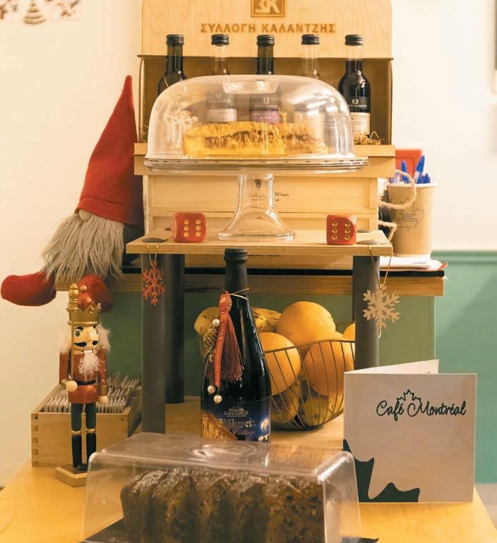 κιλίες ή μια φρέσκια σπιτική λεμονάδα συνοδεύοντάς τα με κάποια από τις επιλογές για πρωινό όπως κρουασάν βουτύρου, ομελέτα, wraps και club sandwich. Καθώς περνάει η ώρα βγαίνουν οι γευστικοί μεζέδες μαζί με την τσικουδιά από το χωριό. Σαλάτα ντάκος, σφακιανή πίτα, απάκι Κρήτης, ταλαγάνι, χούμους και άλλα πιάτα εμπνευσμένα από την κρητική κουζίνα, φτιαγμένα με άριστης ποιότητας πρώτες ύλες. Τους λαχταριστούς μεζέδες θα απολαύσεις με ένα από τα βιολογικά κρασιά που υπάρχουν στον κατάλογο, με το δικό μας αγαπημένο να είναι ο λευκός ξηρός «Ταξίδι στη Λήμνο». Πλούσιες επιλογές θα βρεις και στις μπίρες, με τη Χάρμα Χανίων και τις IPA να ξεχωρίζουν, ενώ θα βρεις και τα κλασικά κι αγαπημένα σε τσίπουρα και ουζάκια. Και αφού έχεις απολαύσει όλα αυτά τα καλούδια, δεν μπορεί, σίγουρα θα έχεις όρεξη για τα πεντανόστιμα cinnamon rolls και τη μηλόπιτα με παγωτό. Όλα αυτά σε μια παρεΐστικη και άκρως γιορτινή ατμόσφαιρα, με ενημερωμένη κάβα και εμπνευσμένα signature κοκτέιλ, ακούγοντας μουσικές του κόσμου, από τζαζ και funk μελωδίες, μέχρι και ελληνικά παραδοσιακά. Η φιλική εξυπηρέτηση των ανθρώπων του Cafe Montreal είναι το «κερασάκι στην τούρτα» σε μια ολοκληρωμένη εμπειρία. Cafe Montreal Το νέο στέκι της Κυψέλης που δίνει μια νοσταλγική αύρα γειτονιάς στην περιοχή CHRISTMAS GUIDE 2022 145