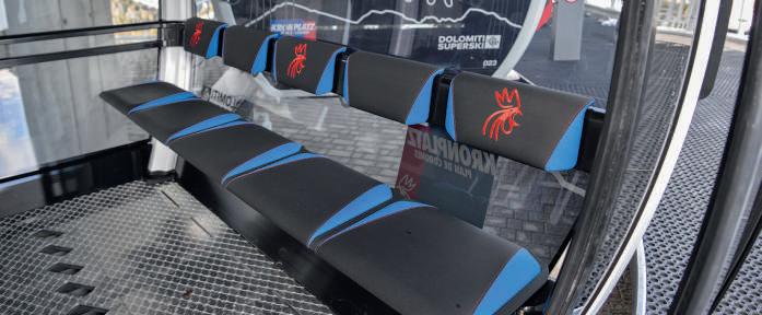 Der erste 8er-Sessellift in Obereggen Neben den Tal- und Bergstationen wurden auch die Sitze von der renommierten Turiner Designschmiede Pininfarina gestaltet. Sie vereinen formvollendete Ästhetik mit wichtigen Sicherheitsaspekten: Eine innovative Kindersicherung sorgt beispielsweise dafür, dass auch kleine Pistenflitzer (und vor allem deren Eltern!) ganz entspannt in Richtung Pampeago schweben können. Um die Schneesicherheit von Dezember bis April