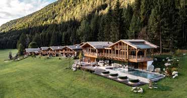 ist, greift Familie Lanz auf Ressourcen aus der unmittelbaren Umgebung zurück: Das Holz für die Chalets und das Quellwasser kommen aus dem eigenen Wald, die Wärme aus der Hackschnitzelanlage und die Mitarbeiterinnen und Mitarbeiter aus der direkten Nachbarschaft. Hier hegt und pflegt man, was man hat. Magdalena und Gregor Lanz sind von der nachhaltigen Philosophie überzeugt: „Wer kleine Kreise zieht, trägt das Seine zum großen Ganzen bei.“