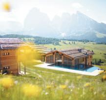zept erzeugen das Gefühl von Freiheit und Leichtigkeit und sorgen dafür, dass die Gäste die Probleme des Alltags abstreifen und sich der vollkommenen Entspannung hingeben. Die lichtdurchfluteten 20 Chalets und 20 Junior-Suiten bieten einen unvergleichlichen Bergblick auf die Dolomiten und verwandeln sich dank ihrer ungezwungenen Gemütlichkeit in ein Zuhause auf Zeit, wo man durch zahlreiche Aktivitäten wie Biken, Wandern oder Spaziergänge neue Energie tanken kann.