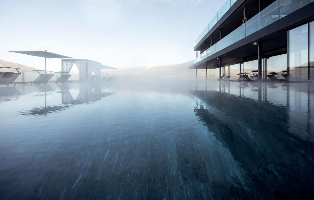 ganzjährig beheizten Sky Pool lässt es sich bei angenehmen Temperaturen an der frischen Luft Bahnen ziehen oder im Whirlpool relaxen. Hinterher wartet ein erfrischender Cocktail auf der Sonnenterrasse. Der Wellnessbereich, der mit über 3.000 Quadratmeter zu den größten der Dolomiten zählt, bietet wohltuende Erholung von der Alltagsroutine. Weitere Informationen unter: www.hotelfanes.it
