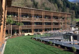 exklusiven Chalet-Suiten an einen leicht ansteigenden Wiesenhang. Umrahmt wird das Ensemble von knorrigen Eschen. Dahinter eine mit Fichtenwald bedeckte Bergkuppe. Im Purmontes logieren Gäste die es gerne naturnah hat, aber auf Komfort nicht verzichten will.