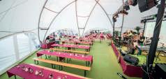 Fröhliche Stimmung im prall gefüllten Festzelt beim exklusiven Konzert der Kastelruther Spatzen.