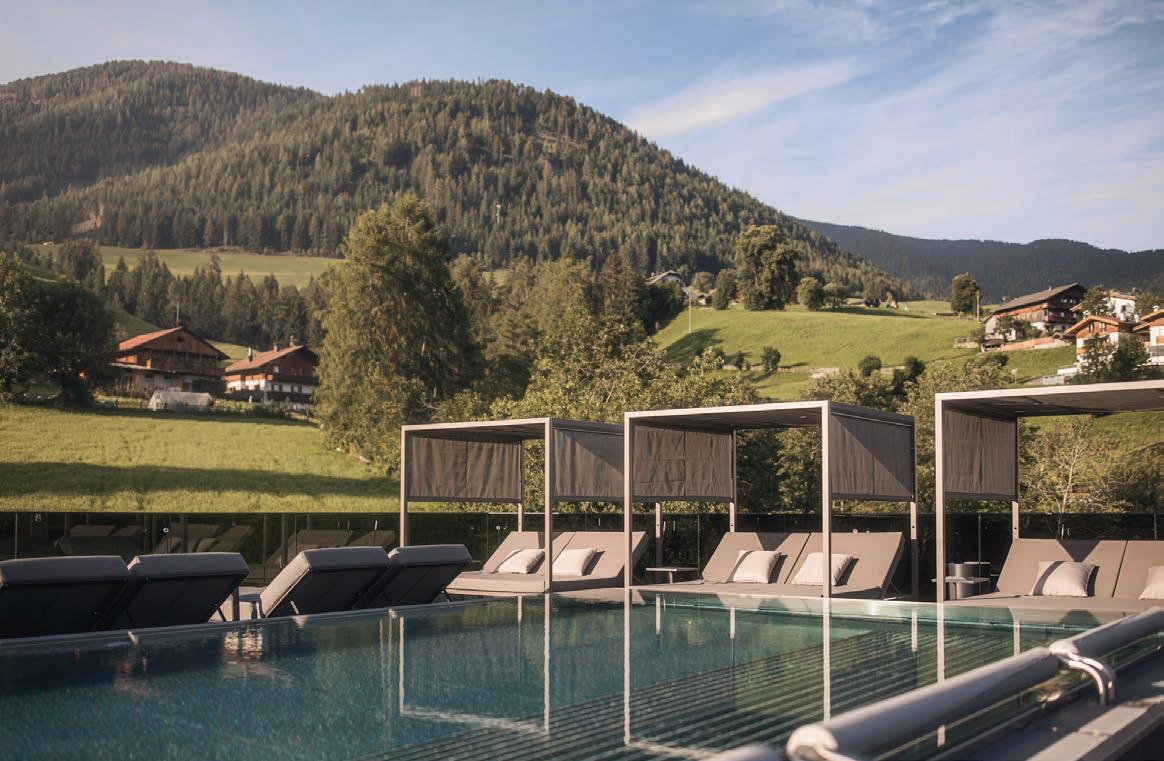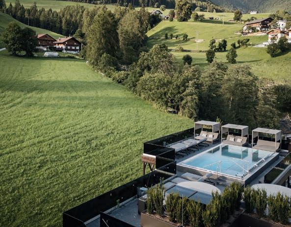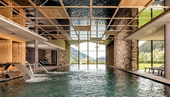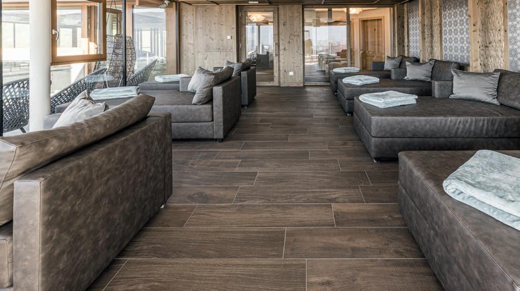 Aufgüsse für Körper und Geist gibt – eine neue Biosauna, ein Dampf- und Aromabad, ein Tauchbecken sowie einladende Ruhe- und Massageräume. Im vierten Stock wurde zudem der Sunrise-Whirlpool eingefügt – ein echtes Highlight. Der dabei neu entstandene Adults-only-Bereich sorgt für extra Ruhe und bietet einen 360-Grad-Blick auf die umliegende Berglandschaft –was für ein Panorama! Egal ob Saunagänger oder Ruhegenießer, hier ist für jeden etwas dabei.