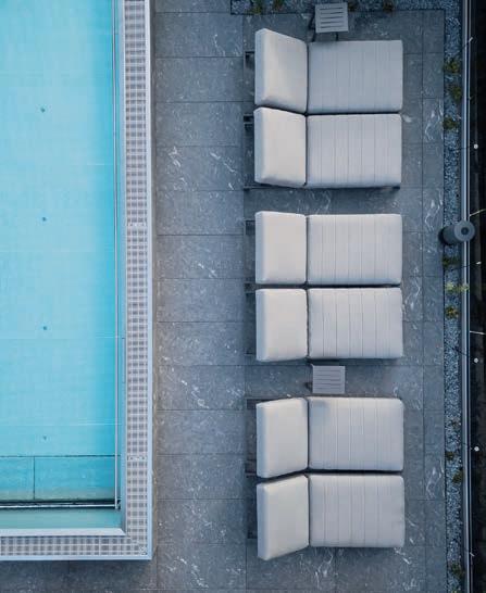 Wunsch der Gäste eingegangen werden. Lagen der alte Saunabereich und der Panorama-Sky-Pool zuvor weit auseinander, finden sie sich nun zu einem einzigartigen Wellnessbereich auf dem Dach des Hotels zusammen. Auf insgesamt drei Etagen erstreckt sich der neue Wellnessbereich mit dem Namen „Torrentes“ wie ein herabfließender Wildbach. Der Name ist hier Programm. Neu entstanden sind – direkt oberhalb der bestehenden Eventsauna, in der es täglich zwei spezielle