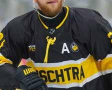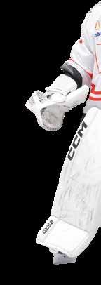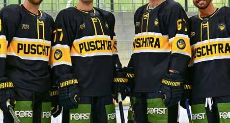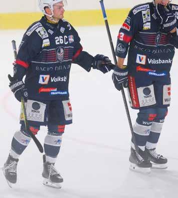 ganzen Tohuwabohu die Aufmerksamkeit entzieht und die Blicke immer wieder einfängt: eine Wand, die EishockeyNostalgiker zum Schwärmen verleitet und bei eingefleischten HCB-Fans zentimeterhohe Gänsehaut erzeugen dürfte. Hier, auf einer schmuckvollen Zeitleiste in den Vereinsfarben, sind all die Titel und Trophäen von Italiens erfolgreichstem Eishockeyverein gelistet. Aufgehübscht durch Jubelbilder von Vereinslegenden.