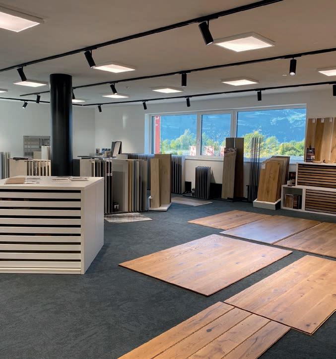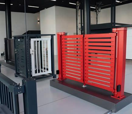 Die großzügige Lagerhalle bietet ausreichend Platz für das umfangreiche Sortiment an Toren, Schranken, Umzäunungen und Bodenbelägen. Ein modernes Hochregallager ermöglicht die schnelle Verfügbarkeit von Ersatzteilen und Kleinteilen, damit die Kunden keine Wartezeiten in Kauf nehmen müssen. Und im neuen Büro und Ausstellungsgebäude stehen sage und schreibe 250 Quadratmeter Ausstellungsfläche für Tore bereit. Besucher können hier Sektionaltore, PVCSchnelllauftore, freitragende Hoftore sowie Hofflügeltore in Ruhe besichtigen und natürlich testen. Auch Poller und Schranken findet man im reichhaltigen Angebot. Und im ersten Obergeschoss befinden sich 280 Quadratmeter Bürofläche sowie 300 Quadratmeter Ausstellungsraum für Böden und Fliesen. Große Besprechungsräume und ein komfortabler Aufenthaltsraum mit Küche runden das moderne Raumangebot ab.