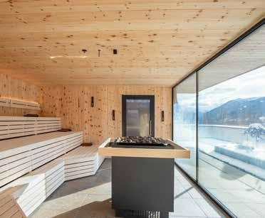 Zudem öffnet sich im Erlebnisbad eine moderne Wellnesswelt, ausgestattet mit 5 Saunen, 4 stilvollen Ruheräumen und bestens ausgestatteten Bereichen für Physiotherapie. Hier regenerieren Körper und Geist – ob nach einem aktiven Tag auf dem Berg, einem Schwimmtraining oder einfach als wohltuende Auszeit vom Alltag. Ergänzt wird das Angebot durch ein einladendes Restaurant samt Bar und Pizzeria mit Platz für 80 Per-