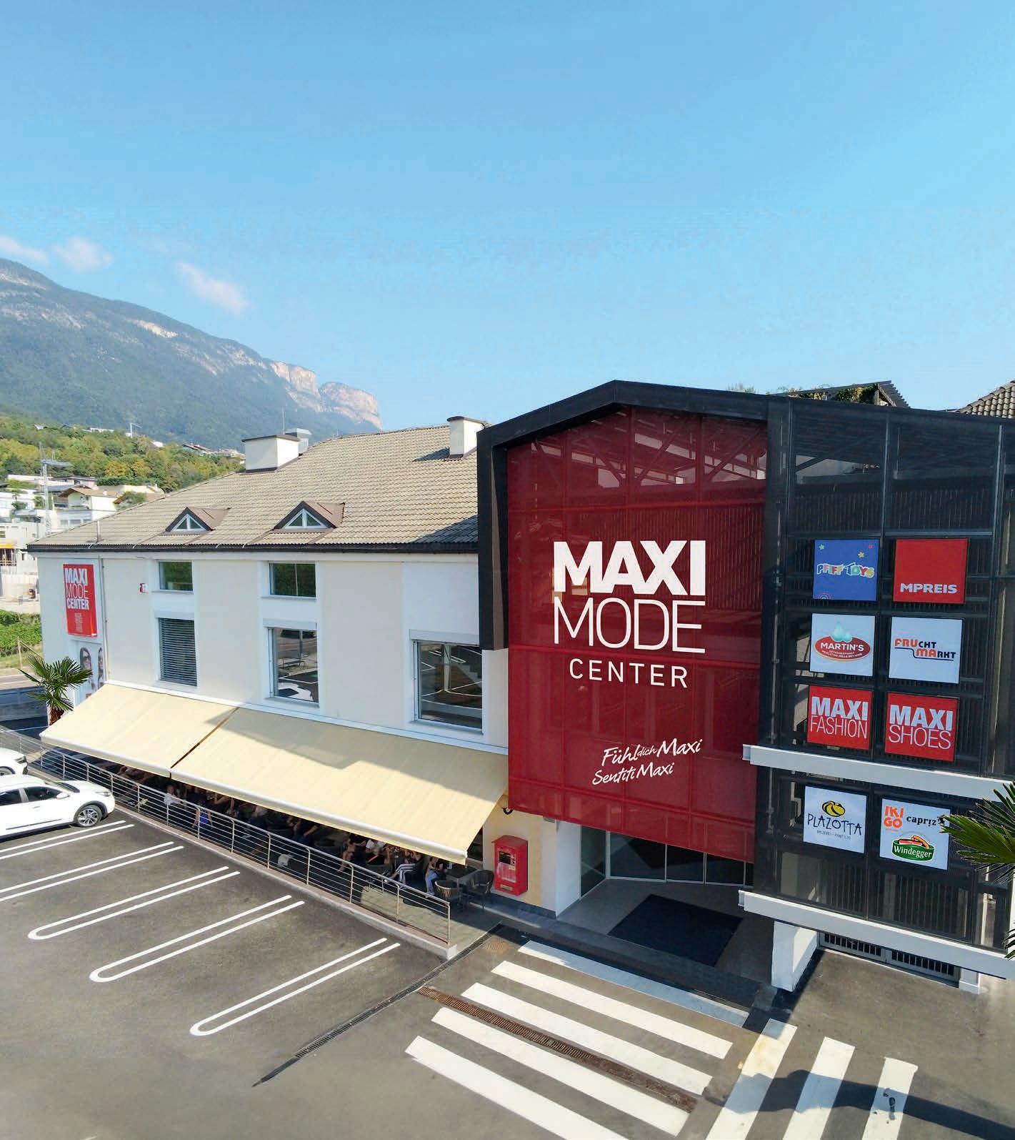 3 x MAXI MODE in Südtirol Ausgehend von der erfolgreichen Entwicklung des MAXI MODE CENTERS Eppan sind vor mehr als 10 Jahren nach demselben Konzept in kurzer Zeit gleich 2 neue Einkaufszentren eröffnet worden: 2010 in Vahrn und 2012 in Algund. In Algund war die Entwicklung besonders positiv, sodass vor einigen Jahren eine große Erweiterung realisiert wor-