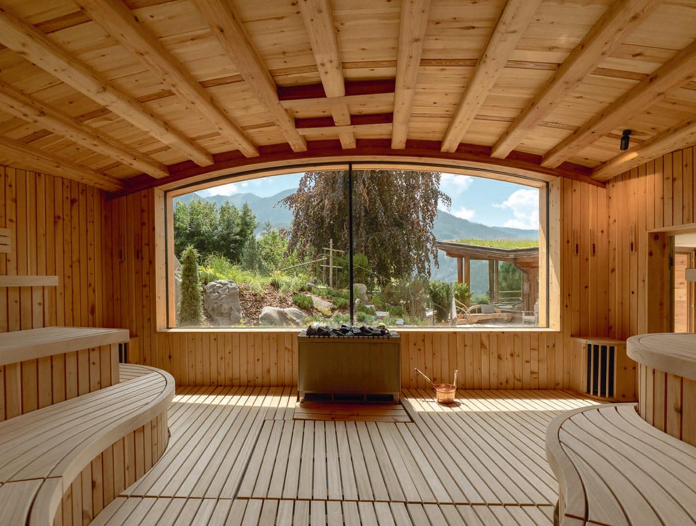 vier Urelemente Erde, Wasser, Luft und Feuer. Besonders die weitläufige WaldbadPromenade mit Bachsauna, Kneipppfad und Schwitzhütte schenkt intensive Naturerlebnisse. Die Erweiterung des SPA umfasst neben der großzügigen Ritualsauna für die täglichen Aufgussrituale auch einen großzügigen Fitnessraum mit Boulderecke