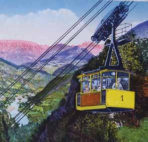 strecken errichtet, wo sich der Geburtsund Geldadel traf. Kaiserin Sisi, die die Berge liebte, ritt im Damensattel über alte Saumpfade in versteckte Seitentäler hinauf. Um die ihr nacheifernden Massen zu befördern, waren andere Mittel nötig. Straßen sollten vielerorts erst nach dem Zweiten Weltkrieg gebaut werden. Die vorletzte Jahrhundertwende war das Zeitalter der Elektrizität und der Schienenwege. Der Bozner Gastwirt Josef Staffler hatte in Kohlern, oberhalb der Stadt Bozen, ein Herrenhaus in einen Gasthof umgebaut. „Ein elektrisch betriebener Drahtseilaufzug“ sollte die Ausflügler hinaufbefördern. Doch die bürokratischen Mühlen des Kaiserreiches arbeiteten langsam: Da „kein Gleis am Boden vorhanden“ sei, fühlte sich das Wiener Ministerium nicht zuständig. Nach langem Hin und
