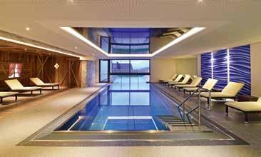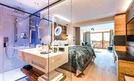 großzügige Sauna- und Relaxbereich zur Verfügung. Im neu gestalteten Garden-Spa im Erdgeschoss geht die Erholungsreise weiter. Hier schwimmen Gäste im Indoor- und Outdoorpool und relaxen im Grün unter Palmen und ebenso mit Blick auf Berggipfel. Außerdem stehen eine Textil-Außensauna und ein Dampfbad im Inneren für die gesamte Familie bereit. Die direkt verbundene Therme Meran mit dreizehn Innen- und zwölf Außenpools und einem fünf Hektar großen Park komplettiert das großzügige Wellnessangebot.