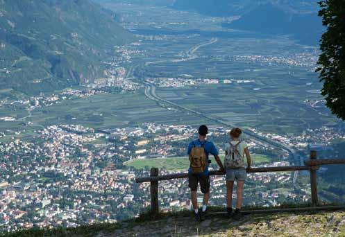 ist über Seilbahnen mit dem Ritten, Kohlern und Jenesien verbunden. Von Meran und Umgebungschwebt man hinauf nach Meran 2000 oder zum Vigiljoch oder zur Hochmuth. Mit dem Quartier in der Stadt bzw. im Tal lebt man gleichsam in zwei Welten. Denn nach dem Bergausflug bleibt genügend Zeit, um sich den Genüssen der Ebene hinzugeben. Gegen Abend brennt die Sonne nicht mehr so stark, später flaniert man in der Fußgängerzone. Bei einem Aperitivo wird überlegt, was