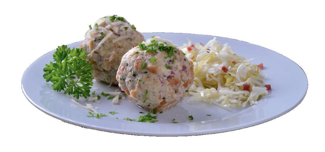 6. Auf Küchenkrepp abtropfen lassen und noch warm mit gedünstetem Sauerkraut servieren.