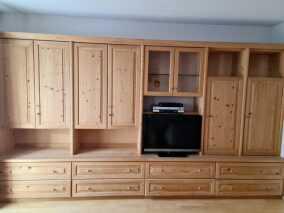 WohnzimmerSchrank zuverkaufenan Selbstabholer,Fichtemassiv,Breite3,86Höhe 2,05.200,00Euro.Tel.349/1491280.