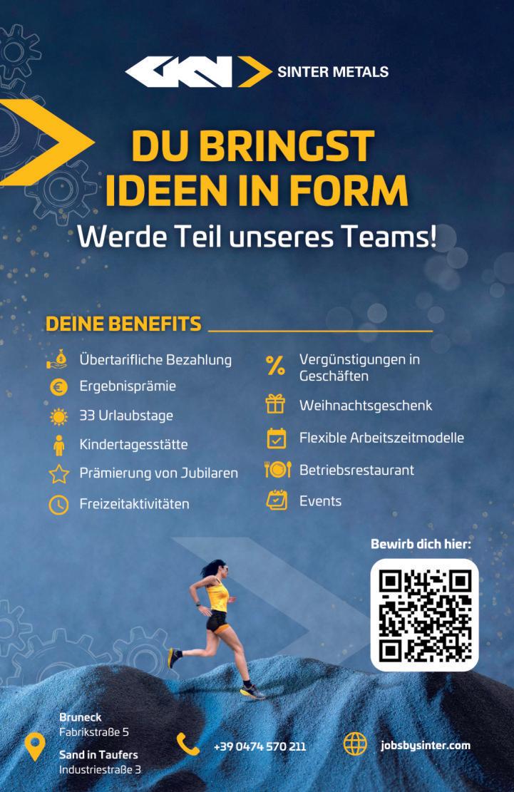 Die unschlagbare Kombifür deineMitarbeitersucheinSüdtirols reichweitenstärkstenPrint-undOnlinemedien Tel.+390471081600|anzeigen@athesia.it|www.dolomitenmarkt.it