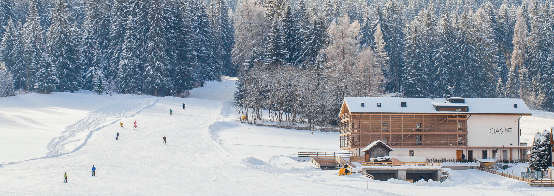 Zum Anfang möchte ich den Saunameister Andreas zitieren: „Das man in Urlaub war, sollte man jemandem anmerken. Skifahren, Winterwandern, das WellnessAngebot und unser gesundes Essen hinterlassen sichtbare Effekte!“ Recht hat er, der Andreas! Gebräunt von der Wintersonne, entspannt und voll Energie ... Arbeitskollegen und Freunde sollten es ruhig merken und gegebenenfalls auch etwas neidisch sein – sofern sie nicht selbst im Winterurlaub in Südtirol waren. Die Vielfalt ist wirklich faszinierend. Längst ist Winterurlaub nicht nur Skifahren oder Langlaufen. Vom Eisstock schießen, Rodeln, über Schneeschuhwandern, abwechslungsreichen Skitouren bis zum Eisklettern reicht die Palette. In direktem Kontakt mit der Natur, in weißer Winterlandschaft mit Blick auf eine faszinierende Bergwelt. Und wenn die Tage im Winter kürzer sind, so macht das gar nichts. Um die Wellness-Angebote und die Köstlichkeiten aus Küche und Keller zu genießen, braucht man ohnehin die Zeit von vier Uhr nachmittags bis zehn Uhr abends.