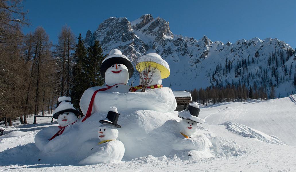 Eiskalte Umarmung gefällig? Dann steht einem Besuch bei Familie Schneemann nichts im Weg! Direkt neben der Bergstation Rotwand wartet die fotogene Verwandtschaft von Frau Holle nur darauf, gemeinsam mit kleinen und großen Fans für den nächsten winterlichen Schnappschuss zu posieren! Und haben Sie die sympathischen Bewohner der Rotwandwiesen schon kennengelernt? Nein, nein, die Rede ist nicht von den Hüttenwirten des Sextner Ski- und Rodelbergs. Hier haben mittlerweile Rentier Rudolf und seine Familie das Sagen! Röhrend, scharrend und verwegen mit den Gelenken knackend, haben sich die waschechten Finnen längst ihre Top-Platzierung auf der Beliebtheitsskala gesichert. Und echte Insider wissen: Jeden Donnerstag gibt es