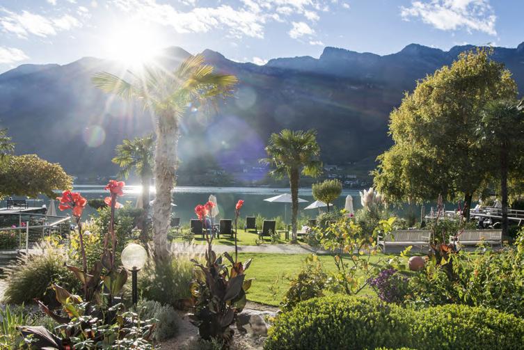 W er das Reich von Familie Pobitzer im Südtiroler Vinschgau betritt, fühlt sich beinahe in den verbotenen Garten Eden versetzt. Sogar in den hellen Zimmern und Suiten hat die Natur Einlass gefunden, und zwar in Form von hochwertigen und natürlichen Materialien, die die Schönheit der Landschaft im Freien widerspiegeln. So natürlich und ungezwungen wie die Umgebung ist auch die Gastfreundschaft, die von authentischer Herzlichkeit gezeichnet ist. Sich wohlfühlen fällt hier besonders leicht: Im 2.200 Quadratmeter großen Spa dürfen Sie sich und Ihren Körper neu lieben lernen. Wohltuende Massagen, Saunaaufgüsse und Heubäder stehen hier an der Tagesordnung. Als Highlight gilt der größte Hotel-Hamam Italiens.