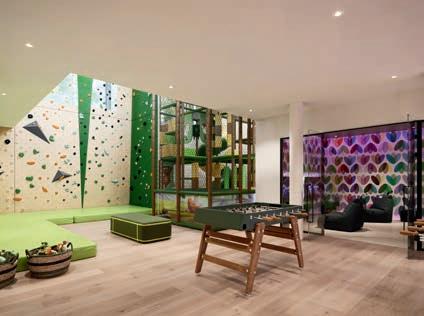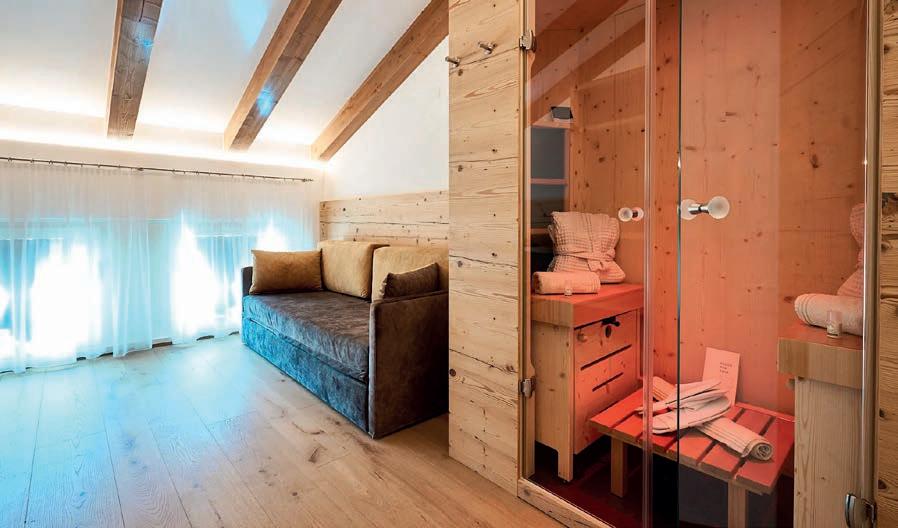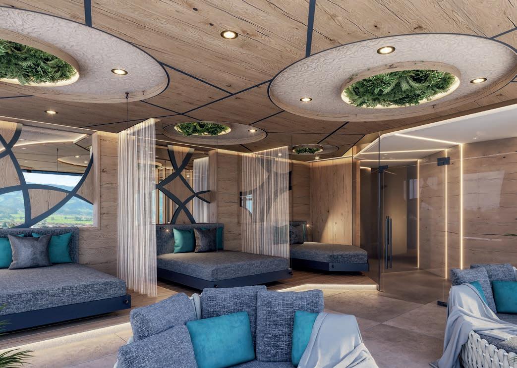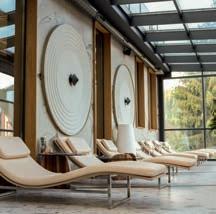durchdachte Meditationsräume, die zum aktiven Innehalten einladen. Dabei wird häufig mit traditionellen Steinsalz-, naturbelassenen Himalayasalz- oder reinen Meersalzziegeln gearbeitet, die als beleuchtete Salzwände eine harmonische Atmosphäre schaffen. Wer eine intensivere Auszeit sucht, wird in bunten Salzgrotten fündig. Diese sind komplett mit Salzsteinen ausgekleidet, während eine Schicht aus losem Salzgra-
