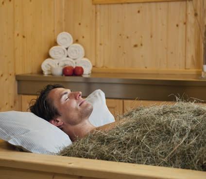 Im Alpen-Heubad Natur genießen Speziell in der Alpenregion stellen zuletzt Heubäder mit wohlriechenden Gräsern einzigartige Highlights dar. Erholungsuchende lassen sich dazu in getrocknete Gräser und ausgewählte Heilkräuter sinken, um sanft von deren aromatischer Wärme umhüllt zu werden. Durch Feuchtigkeit und Wärme entfalten sich ätherische Öle, die viele Beschwerden mindern sollen. Schon vor Generationen erkannten Bergbauern den regenerativen Effekt von frisch eingebrachtem Heu. Sie legten sich bei der Ernte auf das frische Gras und stellten am Morgen fest, dass ihre Erschöpfung verschwunden war. Aus dieser Erfahrung entwickelte sich dann nach und nach eine eigene Wellnessanwendung. Heute integrieren zahlreiche Hotelbetriebe diese alte Praxis in ihre Wellnesskonzepte. Verwendet wird dafür regionales Heu von ungedüngten Almwiesen, das sich nicht nur für Behandlungen eignet. Die verschiedenen Gräser können zudem als dekoratives Gestaltungselement erfreuen, da sie etwa in Form von Heutapeten zu würzigen Sinneserlebnissen beitragen.