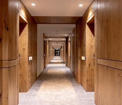 Farben sind ein zentrales Mittel zur Stimmungsgestaltung. Warme Erdtöne vermitteln Geborgenheit und Ruhe, kühle Blau- und Grautöne wirken modern und zurückhaltend. Die Farbpalette eines Hotels kann daher bewusst eine bestimmte Emotion erzeugen oder einen bestimmten Stil unterstreichen. Dabei ist die Kombination mit Texturen entscheidend: Grobe Stoffe neben glatten Oberflächen, matte Farben neben glänzenden Elementen –diese Mischung schafft Tiefe und Sinnlichkeit. Texturen machen Räume erfahrbar. Sie sind ein Schlüssel zur haptischen Wahrnehmung und wirken oft stärker als visuelle Eindrücke. Ein gelungenes Interior nutzt diese Vielfalt, um Räume lebendig und gleichzeitig harmonisch zu gestalten.