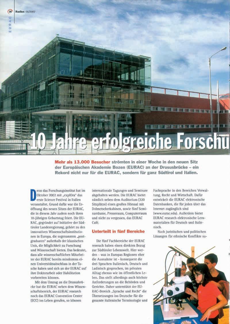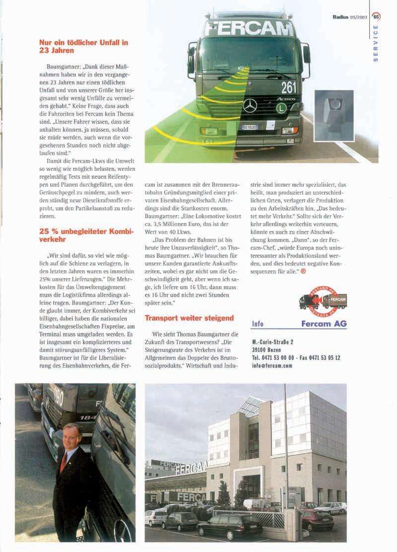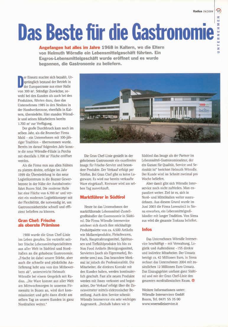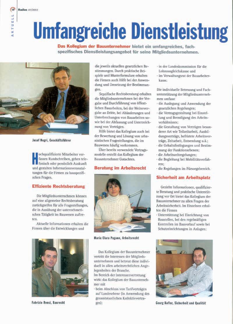 Herausgekommen ist die aufwändigste „Radius“-Ausgabe, die seit Bestehen produziert wurde und die es in diesem Umfang so schnell nicht mehr geben wird. Auf insgesamt über 200 Seiten (!) sind in der gebundenen Ausgabe über 50 Unternehmen aus allen möglichen Bereichen von Dienstleistung über Handel, Handwerk, Industrie bis hin zu Landwirtschaft, Tourismus usw. mit dabei. Auch für Institutionen wie die Freie Universität Bozen, die Eurac Research oder das Versuchszentrum Laimburg sind solche Vergleiche und besonders die enorme Entwicklung der vergangenen 25 Jahre interessant. Abgerundet werden diese Firmenpräsentationen mit interessanten redaktionellen Berichten: Einige Stimmen zur Geschichte der Südtiroler Wirtschaft, der erfolgreiche Weg des FC Südtirol, die Geschichte des ABD Airport samt der Air Alps oder die Geschichte der elektrischen Energie in Südtirol.