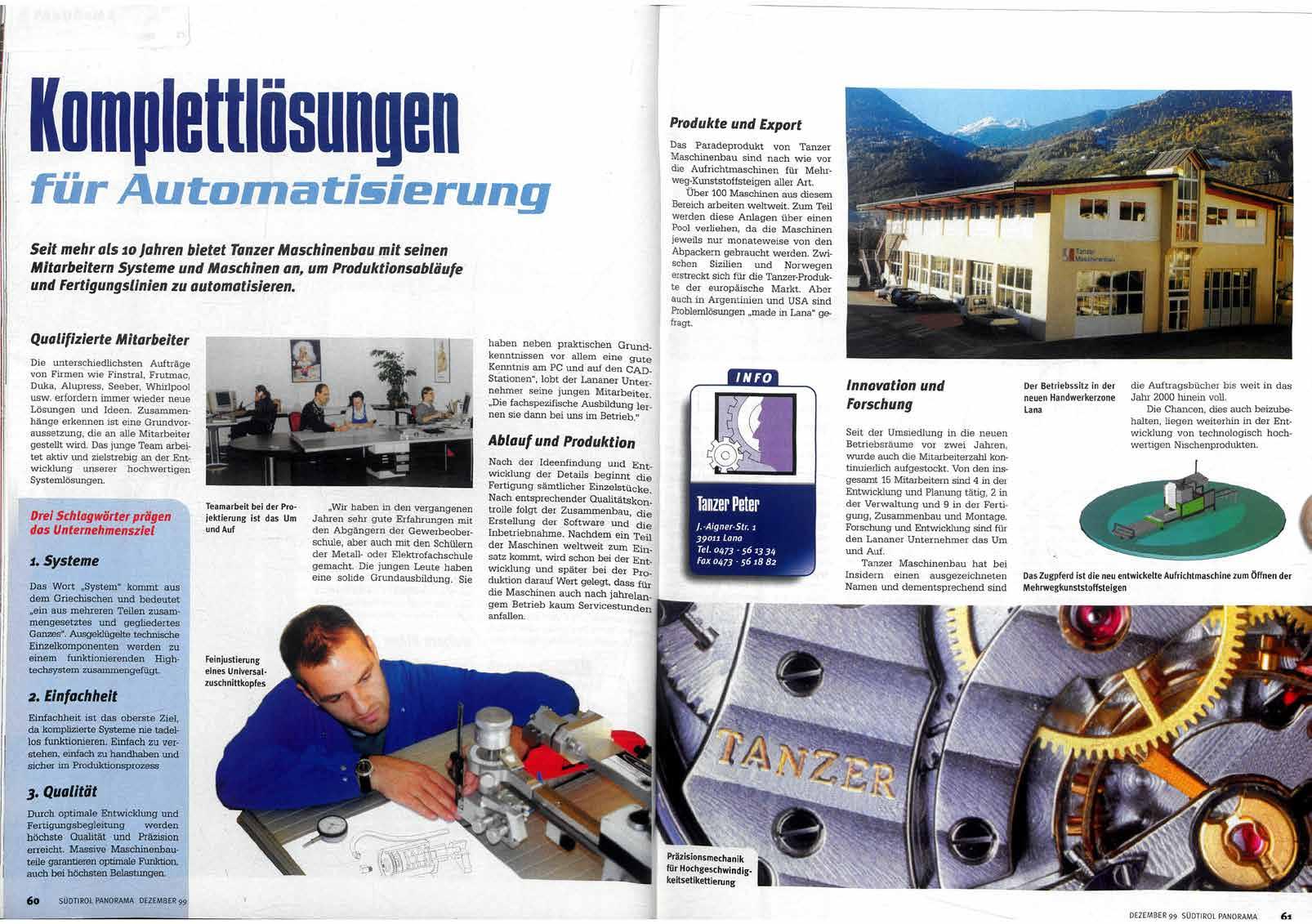 Die Zeiten von heute mit denen vor 25 bis 30 Jahren zu vergleichen und dadurch die wirtschaftliche Entwicklung Südtirols anschaulich zu präsentieren, das war die Grundidee für diese Ausgabe. Um solche Vergleiche in Wort und Schrift anschaulich zu dokumentieren, haben wir für die beteiligten Firmen auf alte PR-Berichte zurückgegriffen und diesen neue aktuelle Seiten gegenübergestellt.