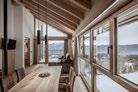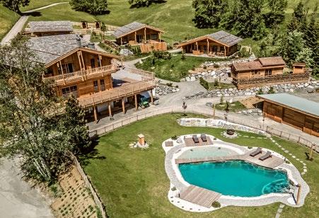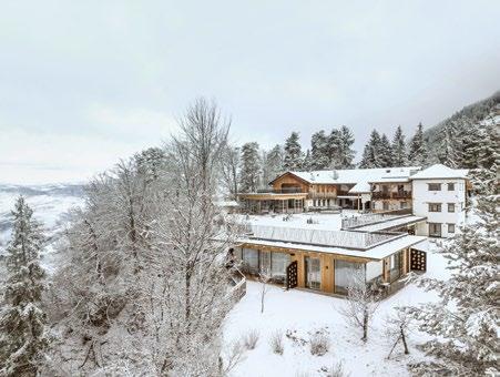 Satteldächer an und verwendete Baumaterialien, die mit der umliegenden Landschaft harmonieren – in erster Linie lokales Lärchenholz sowohl für die Gebäudehülle als auch für den Innenausbau, bei dem dieser Baustoff für Wärme, Behaglichkeit und Gemütlichkeit steht.