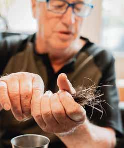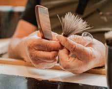 6: Hubert fertigt mit kürzeren Haaren auch schöne Gams- und Hirschradl an und hat dafür mit seinem Sohn eine eigene Maschine konstruiert. Gamsradl kamen Ende des 18. Jahrhunderts auf, als es dem Adel vorbehalten war, einen Gamsbart zu tragen. Um dieses Gamsbart-Verbot zu umgehen, fertigten sich viele Burschen aus den kurzen Nackenhaaren solche Gamsradl an, sie werden auch „Jagertratzer“ genannt.