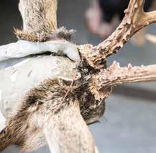 Um das Tier naturgetreu zu präparieren, muss man zuerst die Maße des Tieres nehmen und eine passende Form vorbereiten. Für die meisten Tiere gibt es schon vorgefertigte Korpusse zu kaufen. Für meine Schulterpräparate stelle ich diese selbst her. Dann wird die Decke – so heißt das Fell in der Jägersprache –abgezogen, gegerbt, gewaschen und eingeölt, damit sie weich bleibt. Parallel dazu wird der Schädel mit dem Geweih ausgekocht und das Geweih auf den Korpus geschraubt. Die vorbereitete Form wird nun mit Leim bestrichen und die gegerbte Decke darübergezogen, zurechtgerückt und mit Nadeln fixiert. 4, 5 Tage lang wird dann täglich kontrolliert, ob beim Trocknen alles an Ort und Stelle bleibt, und eventuell nachge-