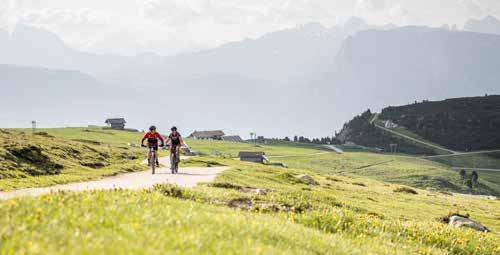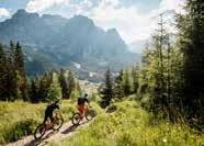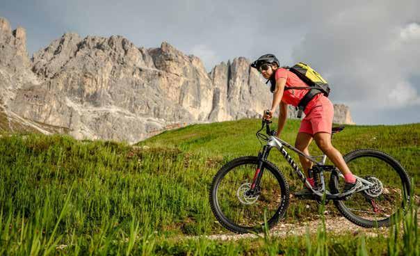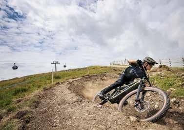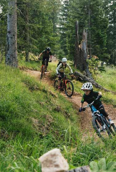 stegen. Dieser Trail verbindet das Pralongià-Gebiet mit dem Campolongo-Pass und führt bis nach Corvara. Der Name „Fle“ spricht für sich: Die Strecke kann in einem Zug befahren werden und erstreckt sich im zweiten Teil über 3 Kilometer mit einer unvergesslichen Abfolge von schnellen Passagen durch Wälder und Wiesen. Bevor man sich auf die Bike Beats Trails wagt, empfiehlt es sich, einige Runden auf den Pumptracks zu drehen, um Koordination und Gleichgewicht zu üben. Der größte Pumptrack befindet sich am Piz Sorega und ist auch für die kleinsten Biker geeignet.