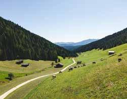 die Ortlergruppe. Angekommen auf der Alm stärkt man sich am besten mit einer frischen Milch oder einem Südtiroler Speckbrettl. Nach der kurzen Pause nimmt man den Almweg in Richtung Planeiler Tal bis zum Planeiler Bach „Puni“. Nach einer ruppigen, recht