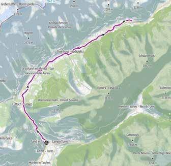 erwartet Sie eine weitere Steigung, die zum nächsten Talboden hinaufführt. Eine kleine Straße führt nach St.Martin und von dort zurück auf die Ahrntaler Straße. Nach kurzer Zeit biegen Sie von der Ahrntaler Straße rechts ab und erreichen so das Dorfzentrum von St. Johann. Nach der Kirche führt der Weg über die Brücke nach
