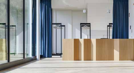 mittelt der Stoff vor den raumhohen Glasfronten im Foyer Wärme und ist schalltechnisch von Vorteil. Eine überzeugende Lösung, die Funktion unan-