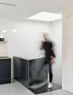 fer, kam sie hier ganz bewusst zum Einsatz. Ein Ort also, hinter dessen Tür alles, was dazugehört, aber nicht zwingend zur Ästhetik beiträgt – sprich Staubsauger, Waschmaschine, Speis –, einfach verschwindet.