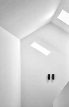 Die anderen Bereiche waren dem Bauherrn persönlich nicht so wichtig. Demnach bekamen sie im Verhältnis nicht zu viel Raum. Dennoch überzeugt auch das Schlafzimmer im Untergeschoss mit angrenzendem Bad durch Qualität und eine klare Linie. Mit eher zeitlosem Design und so reduziert wie möglich wirken die Räume trotz ihrer kleinen Dimension nicht beengt. Im Bad kamen zudem Spiegeln zum Einsatz, die eine optische Weite schaffen. Weite für das Auge ist generell etwas, was in der Planung Relevanz hatte. Damit nämlich auch das Open-SpaceObergeschoss nicht überfüllt, sondern frei wirkt, wurde ein kleines, nicht unbedeutendes Zimmer abgetrennt: die Abstellkammer. Fällt diese heutzutage bei 08/15-Neubauten oft der Kostenersparnis zum Op-