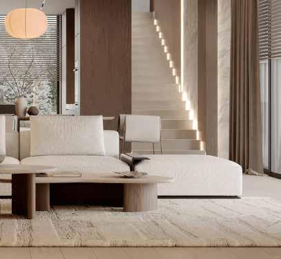 untergänge und bringen Tiefe ins Spiel. Geometrische Muster lenken den Blick, ohne zu dominieren, und verleihen dem Raum Struktur und Dynamik. „Farben, Materialien und Stoffe gemeinsam mit den Kunden auszusuchen, braucht Zeit und Feingefühl“, sagt Plankensteiner. „Denn jeder Kunde ist anders – und die neue Einrichtung soll genau zu ihm passen.“
