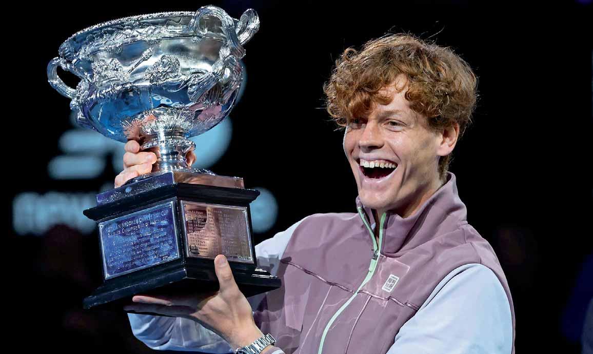 eingenommenhaben–über SportundSponsoring. MitGesamteinnahmenvon 28,3MillionenEurolagSinner 2023abernochdeutlichhinter Tennis-KrösusNovakDjokovic. DerWeltranglisten-Ersteund „GOAT“imTennissport(zumindestnachGrand-Slam-Titeln) verdienteimvergangenenJahr insgesamt38,4MillionenEuro–aufdemPlatzundaußerhalb. Dabeiseierwähnt,dassTennis einesehrsteileEinnahmenpyramideaufweist:DieTop10verdienensehrviel,einige(dieersten150)ganzgutundderganze Resteigentlichzuwenig. 2024werdendieKartenneu gemischt,wieDjokovicbeiseinerHalbfinal-NiederlageinAustralienerfahrenmusste.Und möglicherweiseauchfinanziell. Sinnersacktedankseines Grand-Slam-Siegsinder„Rod LaverArena“fast2MillionenEuroein.Erverdientealsoineinem MonateinVierteldergesamten Preisgeldervon2023. ZudemistseinMarktwert,der sichausseinenErfolgenundseinerBeliebtheitzusammensetzt, zuletztexorbitantangestiegen. Sinneristphasenweisezum größtenSportstarinItalienund weltweitgeworden. SprungaufPlatz1als Karriere-Höhepunkt