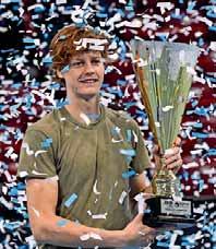 DernächsteMeilensteinin derKarriere.Sinnerholtsich erstmalsdenSiegerpokalbei einemATP-1000-MastersTurnier.Eristder2.Spieler ausItaliennachFabioFognini2019inMonteCarlo,dem dasgelingt.DasFinalegegen AlexdeMinauristeineklare Sache.Nachdem6:4,6:1in 86Minutenkletterterauf Platz6derWeltrangliste. ©