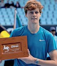 Sinnergewinntauchgleich das1.Turnier2021.ImEndspielinMelbournebesiegter StefanoTravagliamit7:6,6:4. EsistdasersteATP-Endspiel zwischen2SpielernausItalienseit1988.ImHalbfinale amTagzuvorhattederSextnereinenMatchballabgewehrtundgegenKarenChatschanowmit7:6,4:6,7:6die Oberhandbehalten. ©