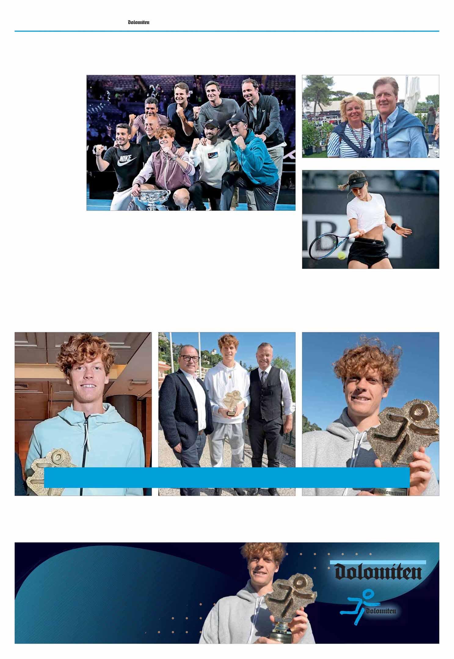 RichardWeißensteiner,derPräsidentdesSüdtirolerLandesverbandes,siehtesähnlich:„Wenn vor4Jahreneinergesagthätte, JannikwirddieNummer1der Welt,dannhättemanihnfür narrischerklärt.Waserbewegt hat,undjetztnochvielmehr,ist unfassbar.Eristeinestrahlende Nummer1,einBotschafter,ein SympathieträgerfürdengesamtenTennissport.Wirkönnten unskeinebessereNummer1 wünschen.Erwirftnieeinen Schläger,gratuliertdemGegner, auchwennerverliert.Dastut nichtjeder.“ ©AlleRechtevorbehalten
