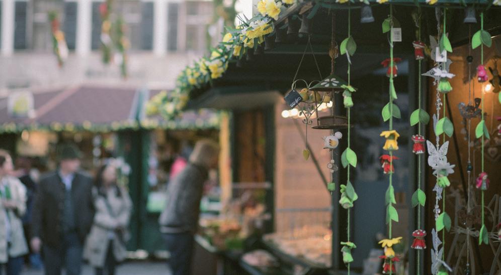 Mehr als 30 liebevoll dekorierte Stände laden täglich von 11 bis 19 Uhr zum Bummeln, Entdecken und Genießen ein. Aussteller:innen aus sechs Ländern – Österreich, Deutschland, Frankreich, Polen, Spanien und Ungarn – präsentieren ein hochwertiges Sortiment mit kunstvollen Handwerks stücken aus Holz und Keramik, edlen Schmuckkreationen, duftenden Parfüms und Kerzen, gravierten Nudelhölzern, feinen Lederpatschen und vielem mehr. Eine perfekte Gelegenheit, besondere Ostergeschenke zu finden! Auch kulinarisch verspricht der Ostermarkt Genussmomente für jeden Geschmack: Von herzhaften Spezialitäten wie Speck und Naturkäse bis hin zu süßen Verführungen wie Nougat, Fruchtspießen und frisch gebackenen Baumstriezeln. Wer es international mag, kann sich auf trendige Poke Bowls und gefüllte Croissants freuen.