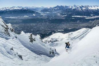 Der Tiroler April-Scherz – 11 Kilometer, von 860 bis 2.300 Meter Höhenmeter. Einmal eine Rinne fahren –das trauen sich mit Figln (Firngleiter) selbst weniger geübte Skifahrer. Die typischste und wohl lustigste AprilAktivität im Raum Innsbruck.