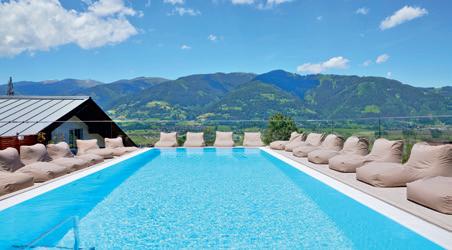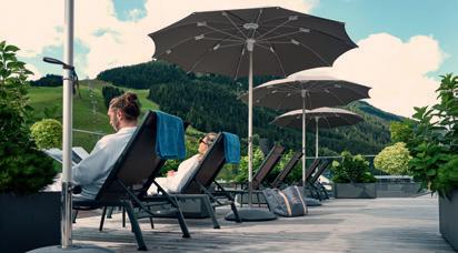 Entspannen im Panorama-Hallenbad, im Whirlpool mit Ausgang zur Sonnenterrasse, im weitläufigen Almhof-Saunadorf mit Finnischer Stubensauna, Biosauna, AromaDampfbad, Kräuterbad …