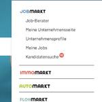 • Öffnen Sie das Menü ganz oben rechts und klicken Sie unter der Rubrik „JobMarkt“ auf „Kandidatensuche“. 1