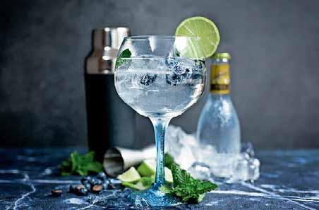 DerGinTonicwirdnormalerweiseineinemhohenGlasmit Eiswürfelnzubereitet,wobei derGinzuersthinzugefügtund danndasTonicWaterdarüber gegossenwird.EineZitronenoderLimettenscheibedientals GarniturundverleihtdemGetränkeinezusätzlicheFrische. InsgesamtistderGinTonicein zeitloserKlassiker,dersowohl Gin-alsauchNicht-Gin-Liebhaberanspricht.Seineeinfache ZubereitungundseinerfrischenderGeschmackmachen ihnzueinerbeliebtenWahlfür entspannteAbendeodergeselligeAnlässe. ©
